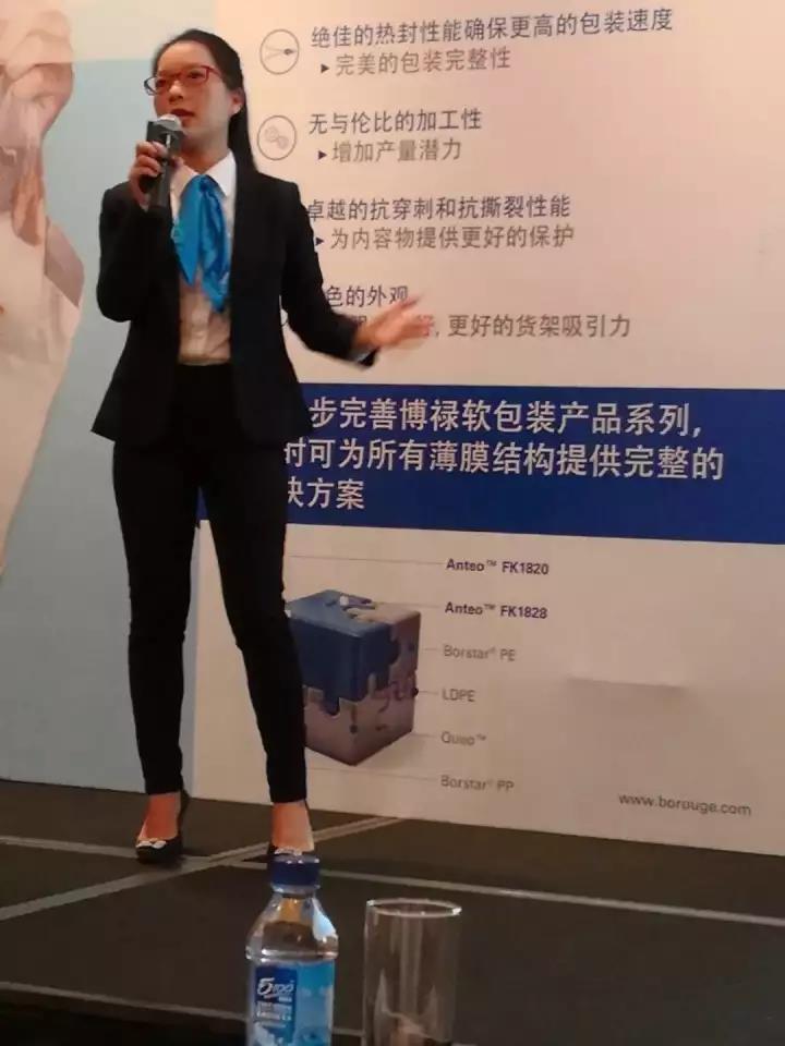 博祿Shariene Goh為大家介紹茂金屬中國市場的發展趨勢,博祿市場經理柯敏靜翻譯
